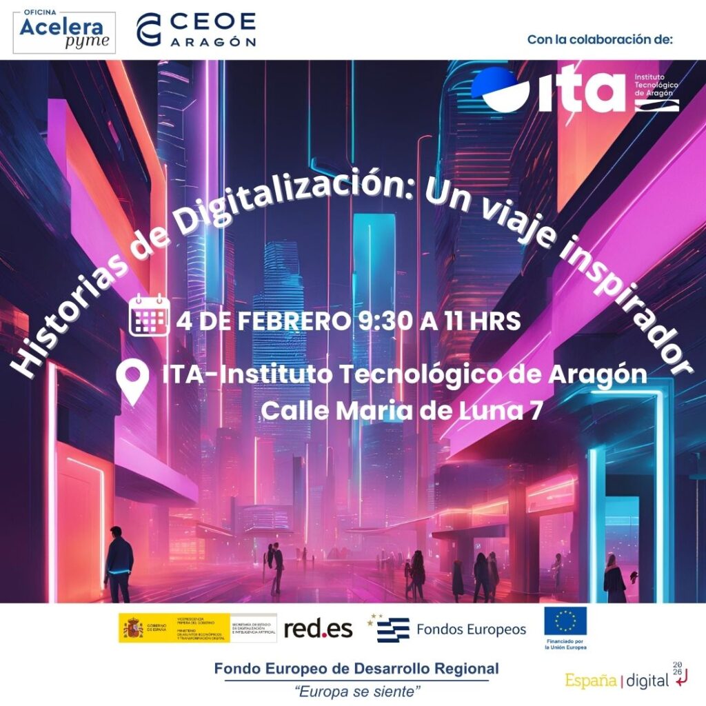 Aforo limitado. Completa el formulario de registro: https://ceoearagon.es/evento/historias-de-digitalizacion-un-viaje-inspirador/